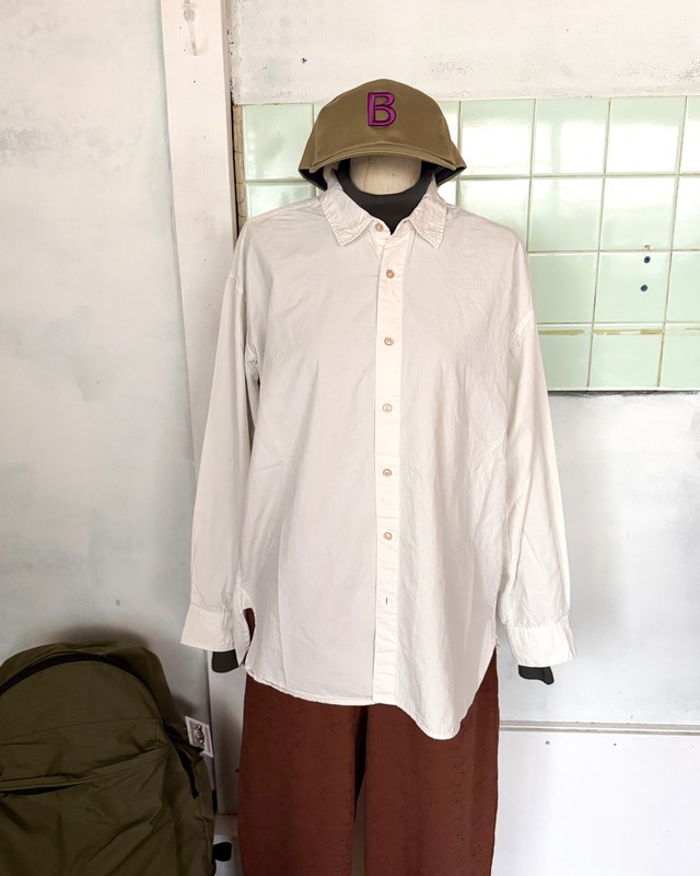 【ARMEN WOMEN】 -UTILITY REGULAR SHIRT- ハリ感と光沢のある 上質なポプリン素材を使用 ドロップショルダー 程よいこなれた感が 着やすいシャツ SIZE:CHEST 57 LENGTH 68 SLEEVE LENGTH 75 100% COTTON PRICE:¥17600(tax in)